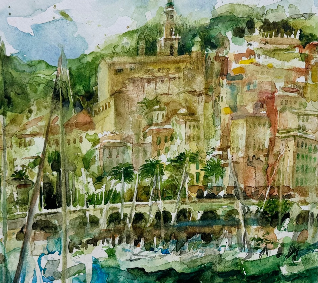 『マントンの港町』は、南フランスの美しい風景を描いた特別な作品です。その明るい海と情緒溢れる町並みが際立ち、見る人をリラックスしたひとときへと誘います。私はこの作品を通じて、マントンの持つ独特の魅力と穏やかな海辺の生活を表現し、皆様の日常に癒しの瞬間をお届けできればと心から願っています。