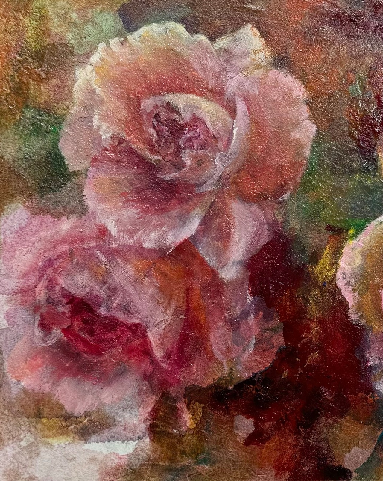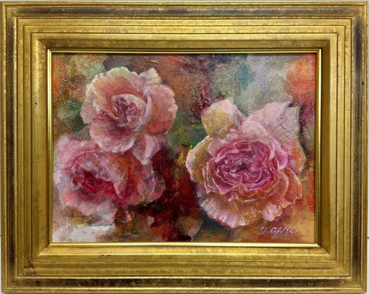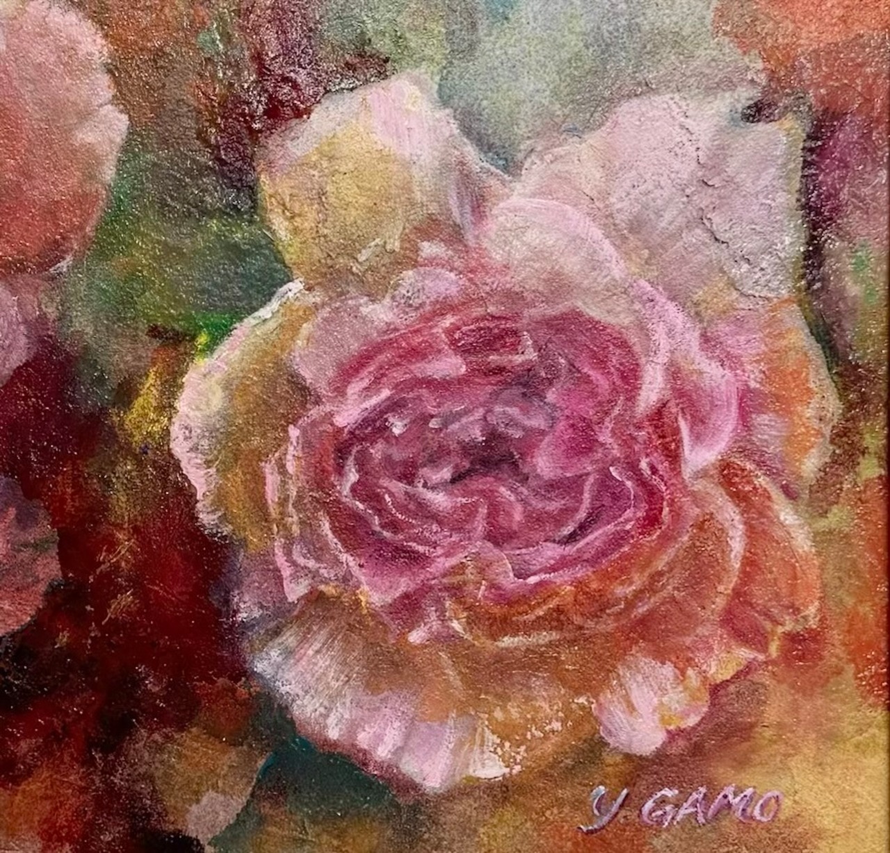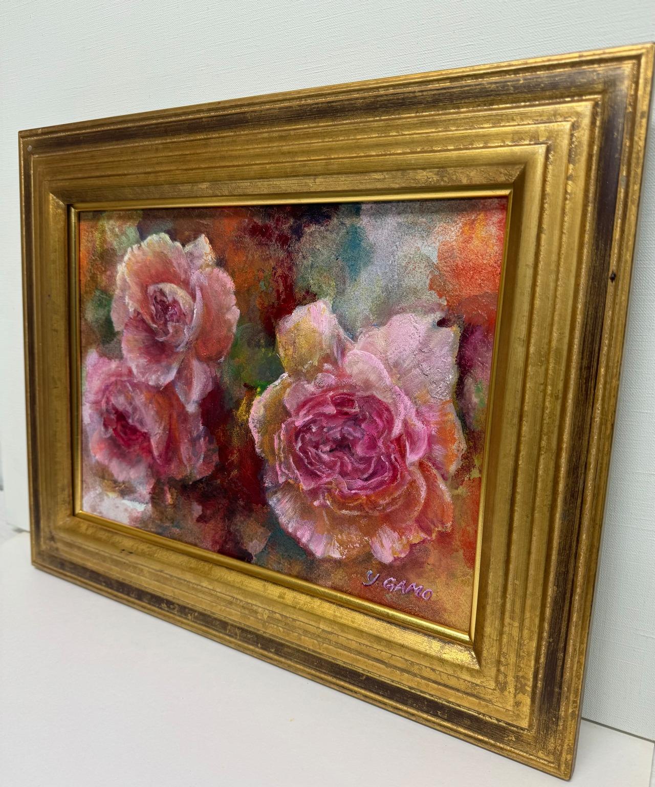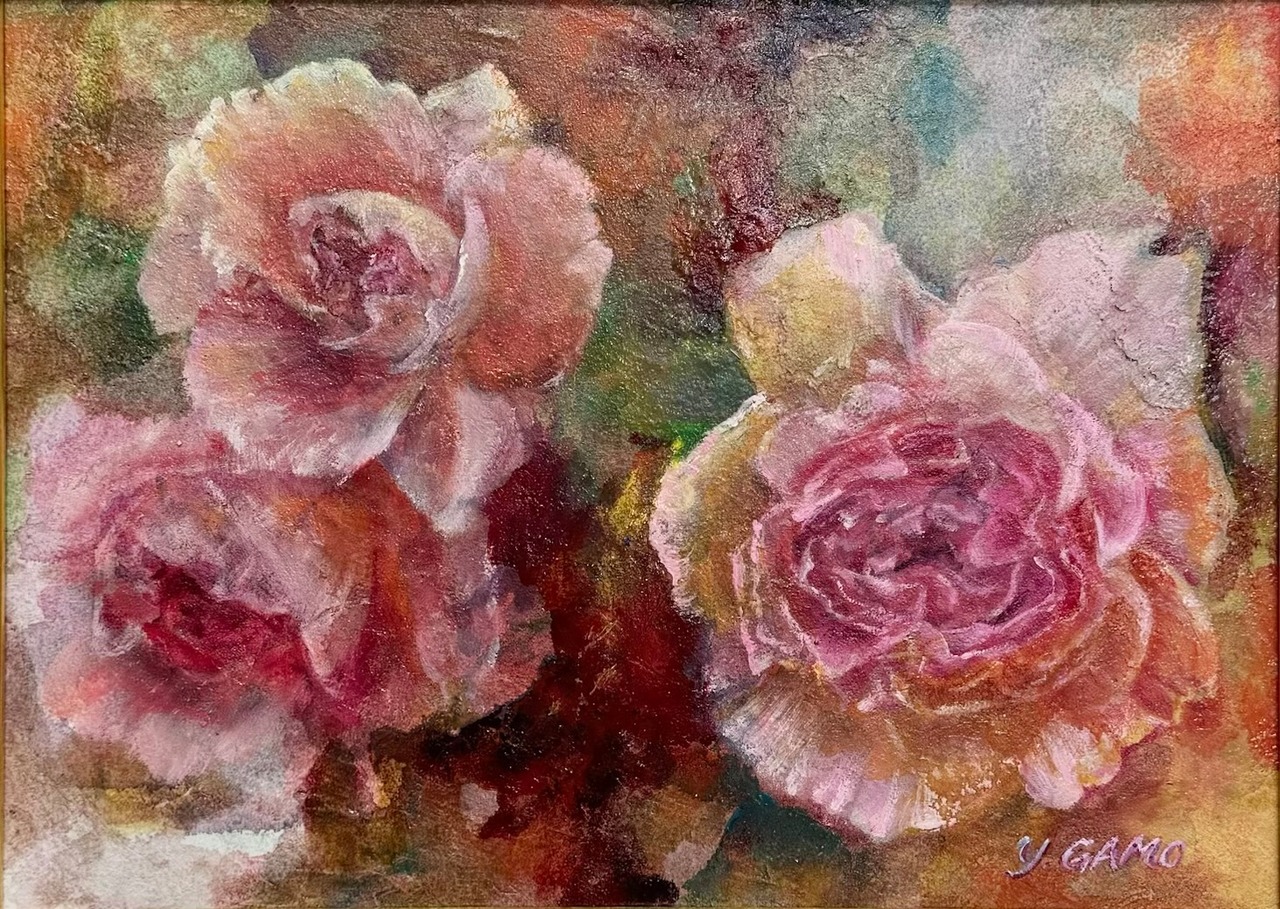 また、油彩の特性を存分に活かし、薔薇の美しさと独自の輝きをリアルに引き出しました。花の姿に触れながら、心が満ちていく瞬間をお楽しみください。