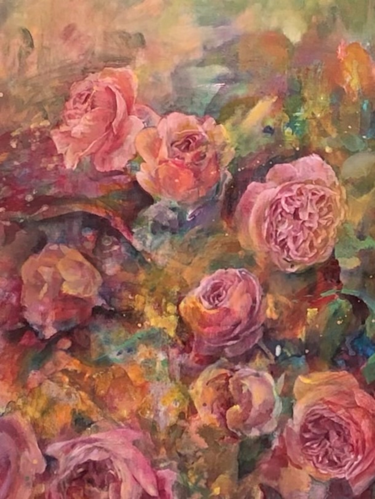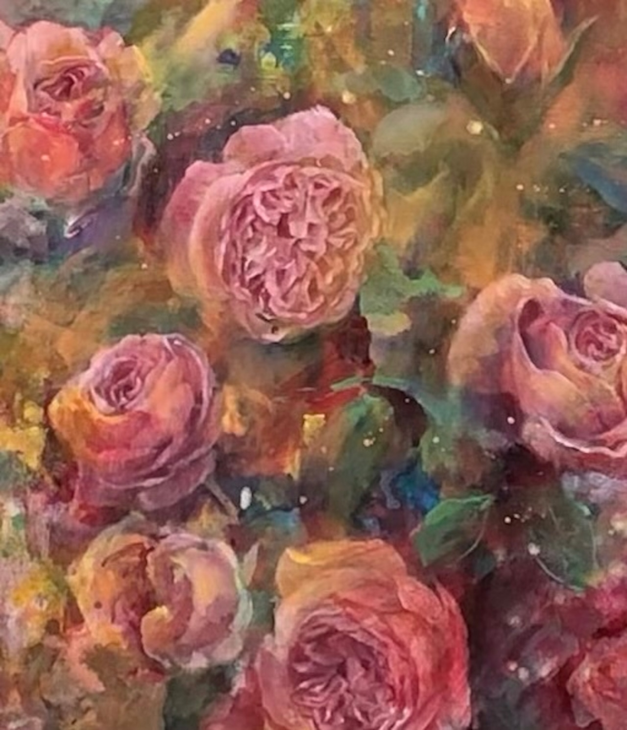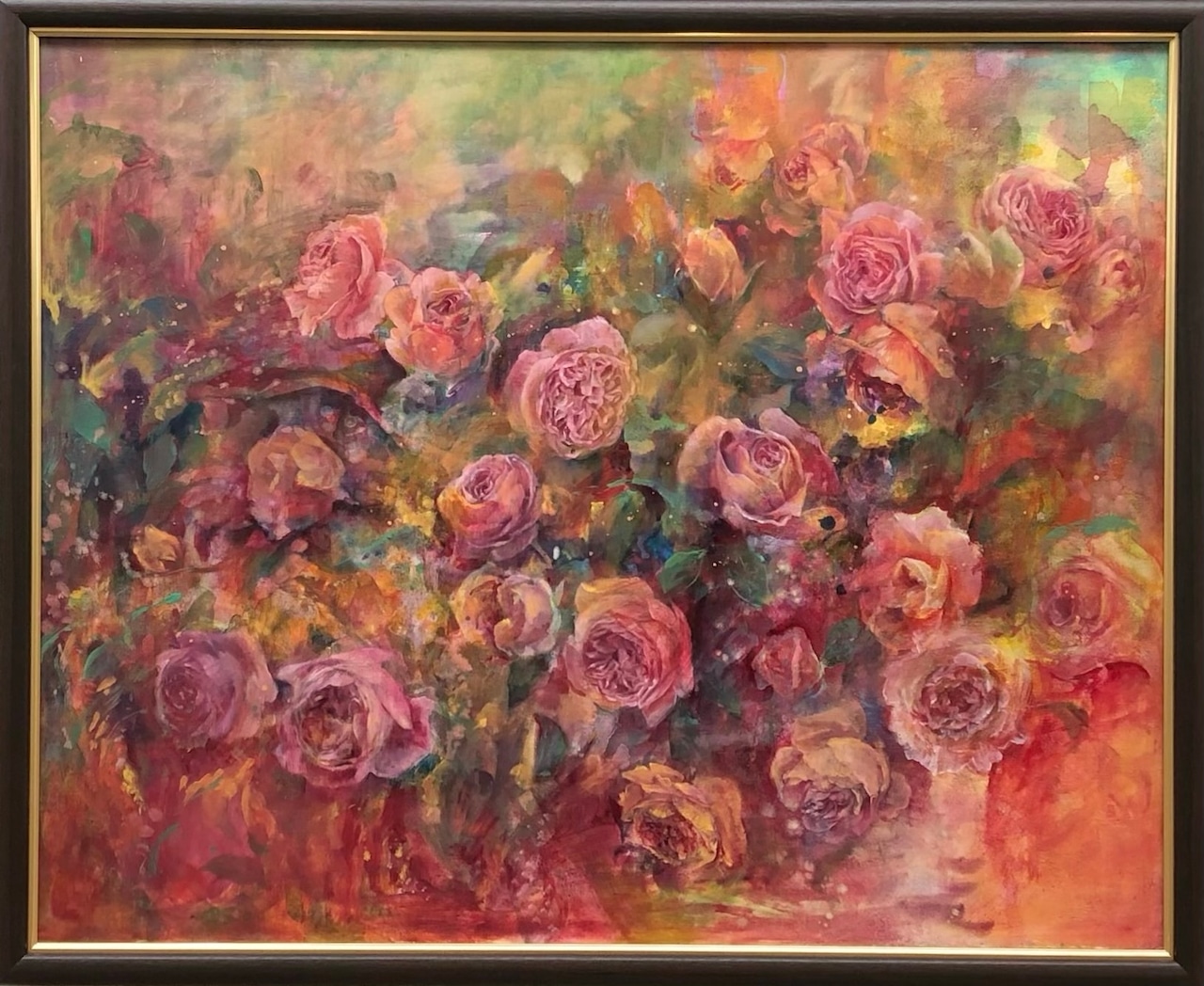 さらに、油彩の特性を活かし、花びらの柔らかな質感と自然光の変化を巧みに表現しました。心を打つ瞬間を感じながら、薔薇の美しさを堪能してください。